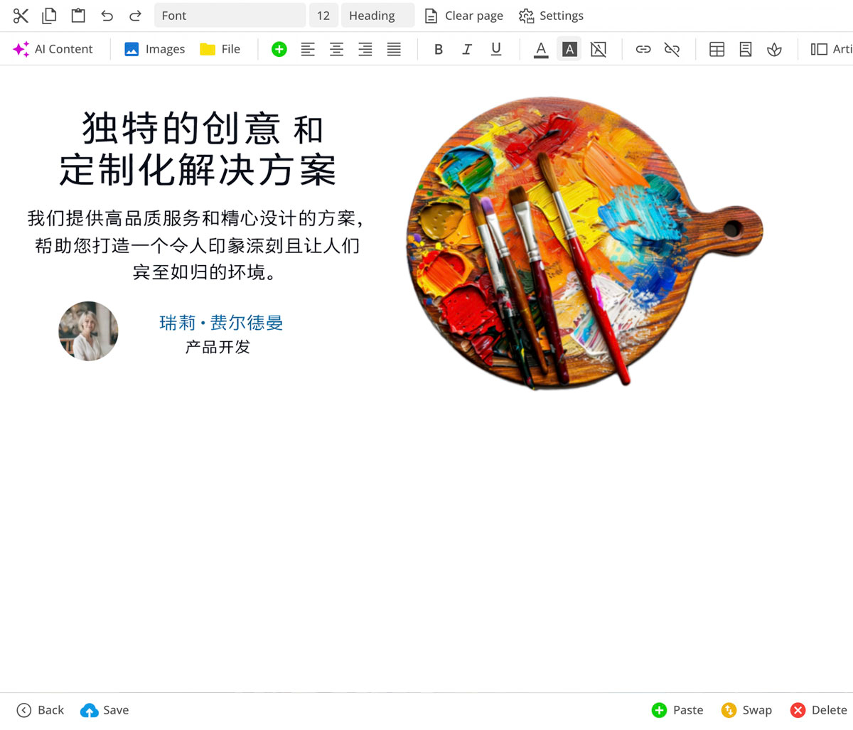 Optional kann der Editor so eingeschränkt werden, dass ausschließlich layoutkonforme Inhalte erstellt werden – ohne falsche Farben, ungewöhnliche Abstände oder Designbrüche.