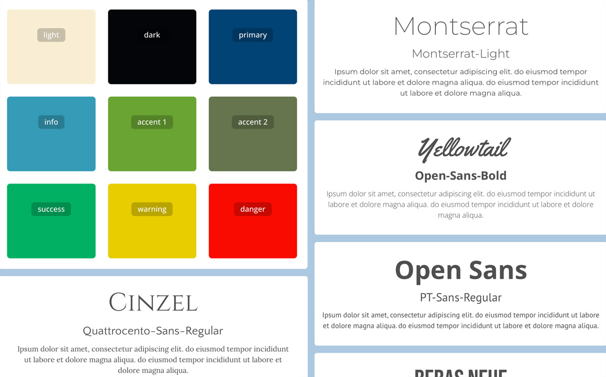 Das Layout lässt sich ganz einfach individuell anpassen. Verschiedene Farbsets und Schriftarten-Sets stehen dafür zur Auswahl. Auch Abstände, Rundungen und weitere Stilelemente können flexibel angepasst werden.