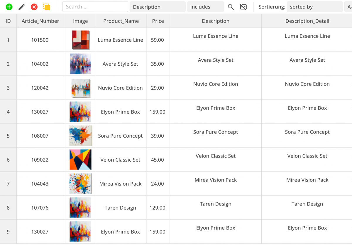 Die Datenbank lässt sich besonders einfach in Tabellenform verwalten. Inhalte wie Shop-Artikel oder Blog-Beiträge erstellst du genauso einfach wie Posts in Social Media.
