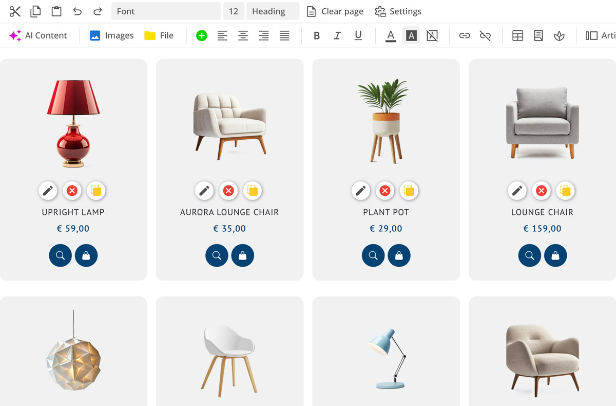 Artikellisten lassen sich importieren und Bilder automatisch zuordnen. Auch der Webshop kann mithilfe von KI in bis zu 24 Sprachen übersetzt werden.