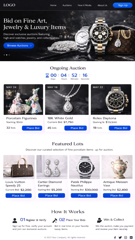 Live-Auktion mit Video & Ton, Soft-Close, Zeitauktion.