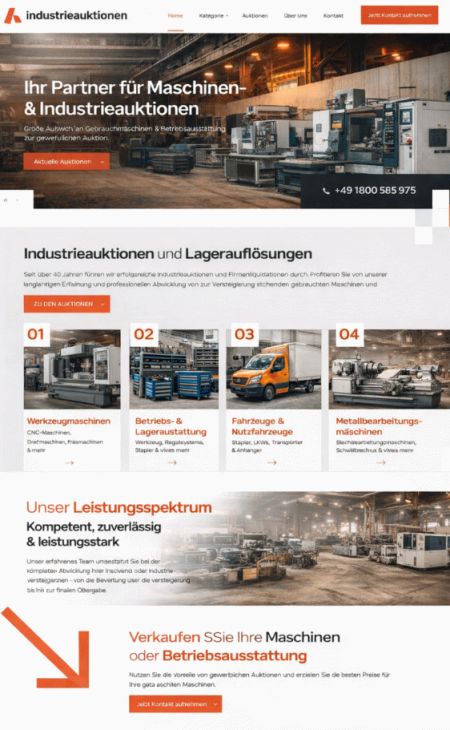 Branchen-Module liefern echte Arbeitsabläufe: Auktion, Besichtigung, B2B-Login, Terminbuchung, Live-Stream.