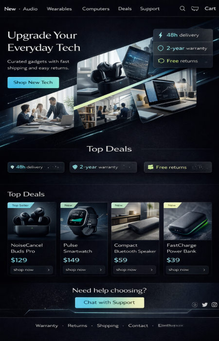 - Bewertungen, Trust-Badges und klare Liefer-/Retoureninfos